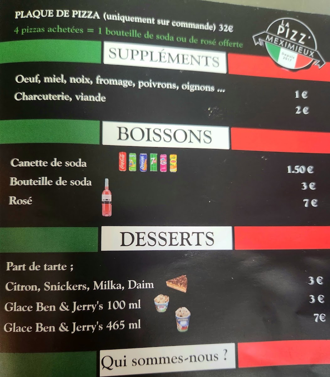 Welcome to LA PIZZ', a delightful pizzeria nestled at 56 Rue de Lyon, Meximieux, France. This charming eatery is known for its tantalizing pizzas crafted from fresh ingredients. The menu boasts a wide variety of options, ensuring something for every palate at affordable prices.